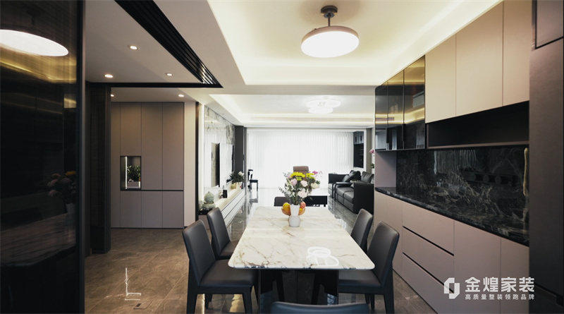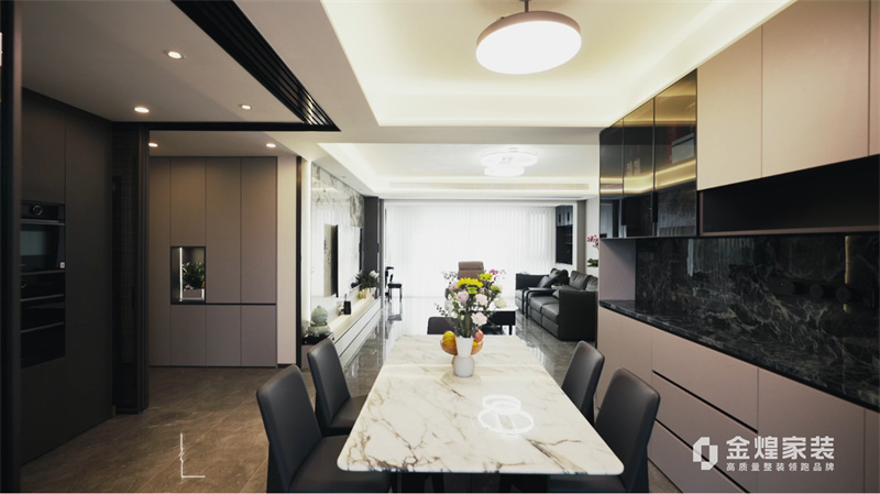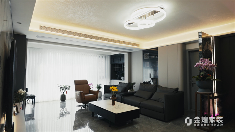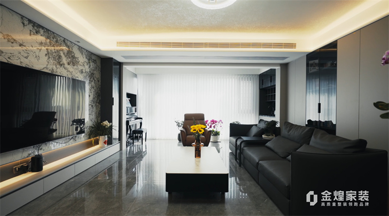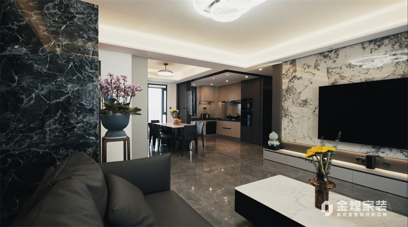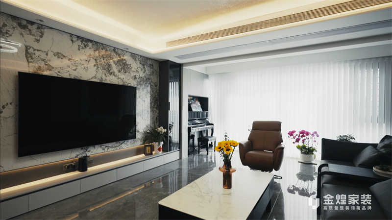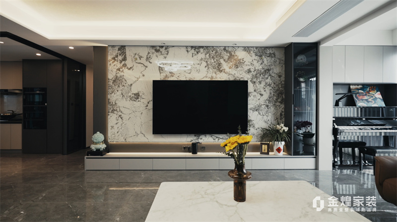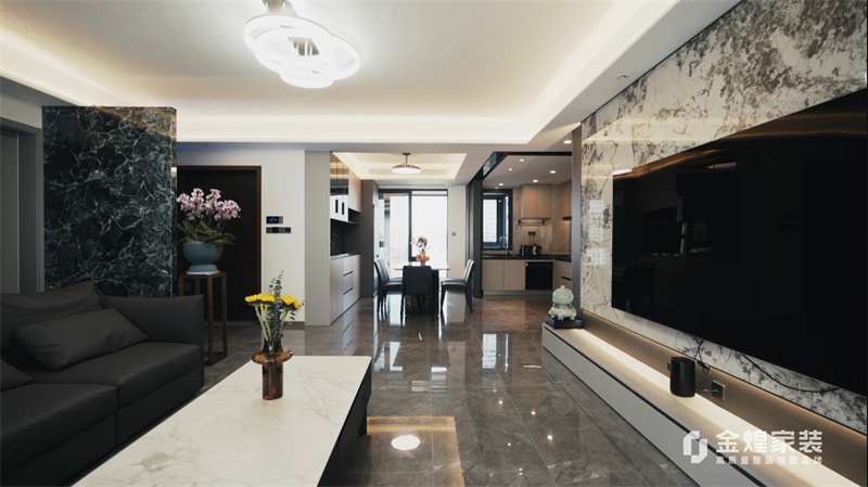 電視背景墻的大理石紋理、簡潔的家具線條以及精心布置的燈光設(shè)計,都體現(xiàn)了現(xiàn)代輕奢風(fēng)格的特點(diǎn)。同時,通過添加一些鮮花和裝飾品,增加了空間的溫馨感和生活氣息。