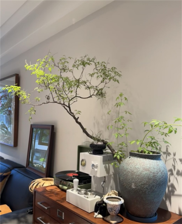 美拉德風的核心是暖色調,關鍵色是紅棕色(給人一種溫暖、高貴的感覺),最適合用于表現復古、中古情調,如局部配以跳躍的顏色,就會更有靈魂,比如鮮亮的綠植、抱枕、燈飾、屏風……像壁爐里的火苗一樣能成為點睛之筆。