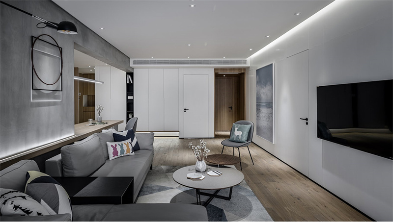本案中,繁復(fù)的裝飾被摒棄,取而代之的是線(xiàn)條的簡(jiǎn)潔與空間的流暢。以原木地板、家具搭配白色墻面,不僅營(yíng)造出一種寧?kù)o舒適的氛圍,更彰顯了生活的品質(zhì)與品味,讓每一個(gè)居住空間都充滿(mǎn)了現(xiàn)代感與高級(jí)感。