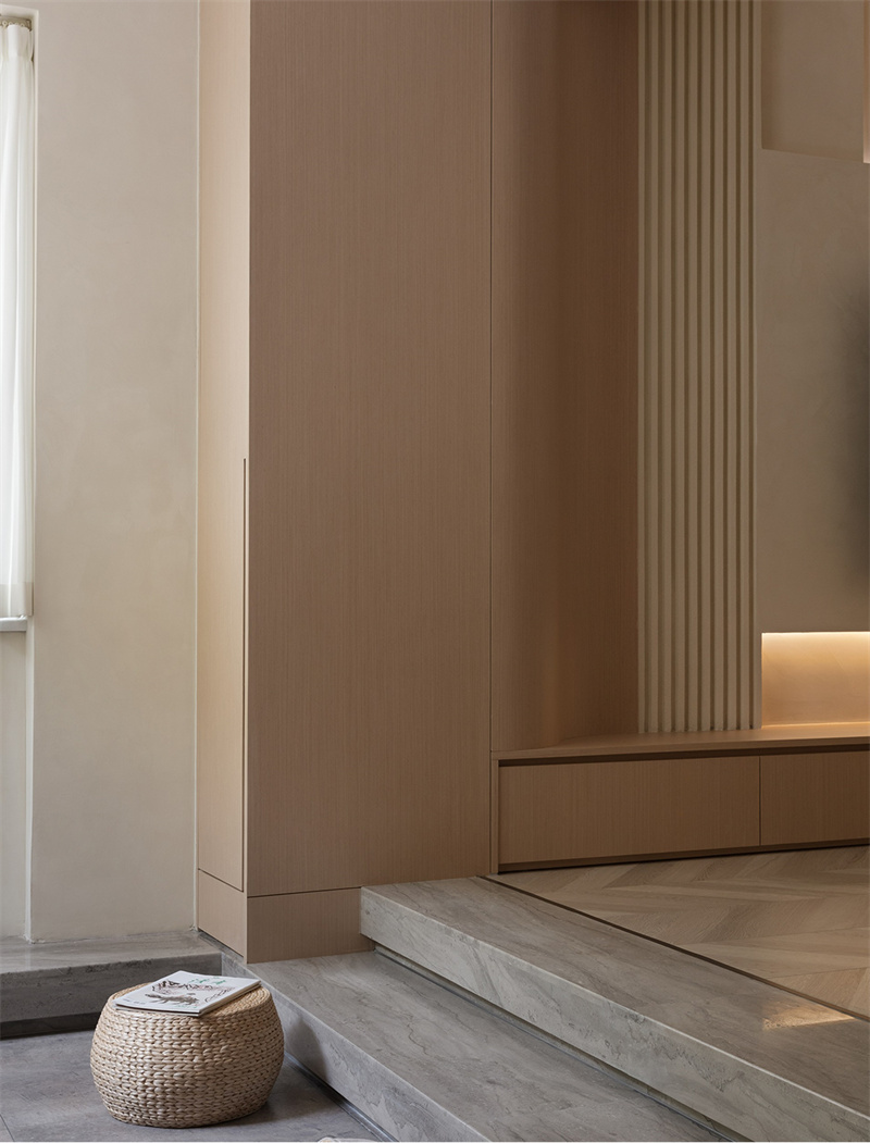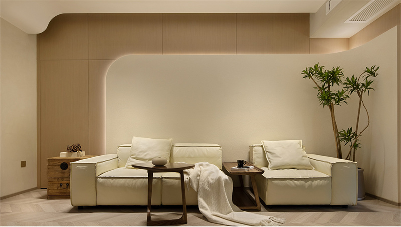 侘寂風格強調自然樸素、簡約淡雅的美感。踏入這方空間,一股淡雅的侘寂之美悠然鋪展,每處細節都透露著對生活本質的追求,仿佛步入一場關于簡約、自然與禪意的居住藝術之旅。