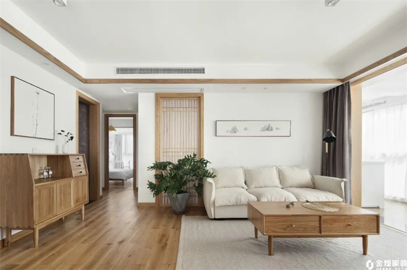 本案以天然木質(zhì)為主要材料,設(shè)計簡約卻富有層次感,通過巧妙的光影運(yùn)用和清新素雅的軟裝搭配,打造出一個既溫馨又充滿現(xiàn)代感的居住空間。