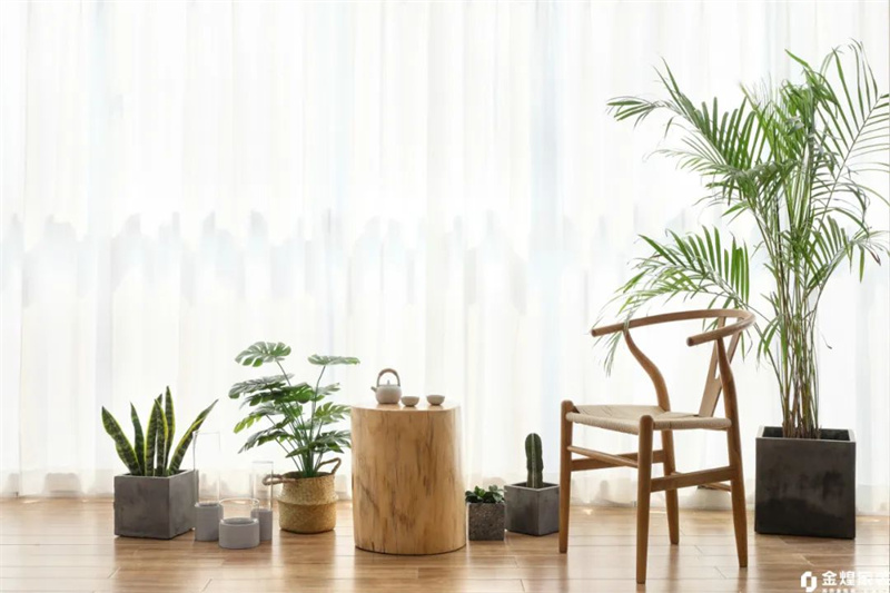 陽臺鋪設(shè)著淺色原木地板,陽光透過玻璃窗灑滿整個空間,再點(diǎn)綴幾盆綠植,生機(jī)勃勃的綠意與原木色調(diào)相互映襯,為空間注入了自然的活力。