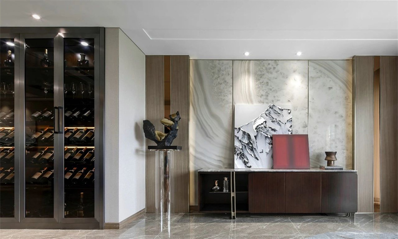 新中式裝修風格將傳統文化與現代設計完美結合,展現出一種獨特的優雅與和諧。本案設計的每一個細節都蘊含著對傳統藝術的尊重,同時又融合了現代生活的舒適與便捷,讓人感受到傳統與現代的交融,營造出一個既富有文化深度又充滿現代氣息的空間。