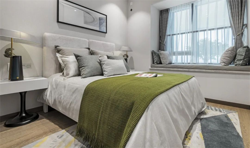 次臥設計同樣精致考究,精選舒適柔軟的床品和簡約裝飾畫,營造出輕松愜意的睡眠空間。柔和的色調,讓人感到寧靜和舒緩,為身心帶來最佳的休息體驗。