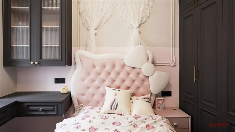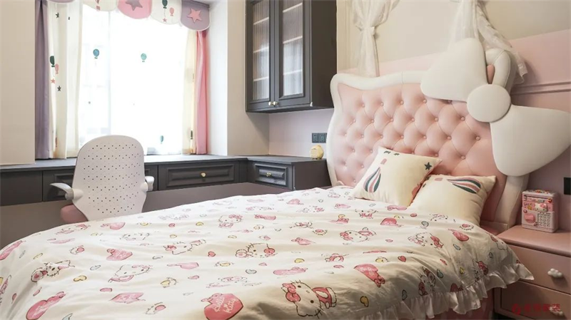 粉色裝飾的女孩房,為孩子構筑一個夢幻的空間,趣味的裝飾,充滿著自由的想象力,承載著孩子天真浪漫的夢想。